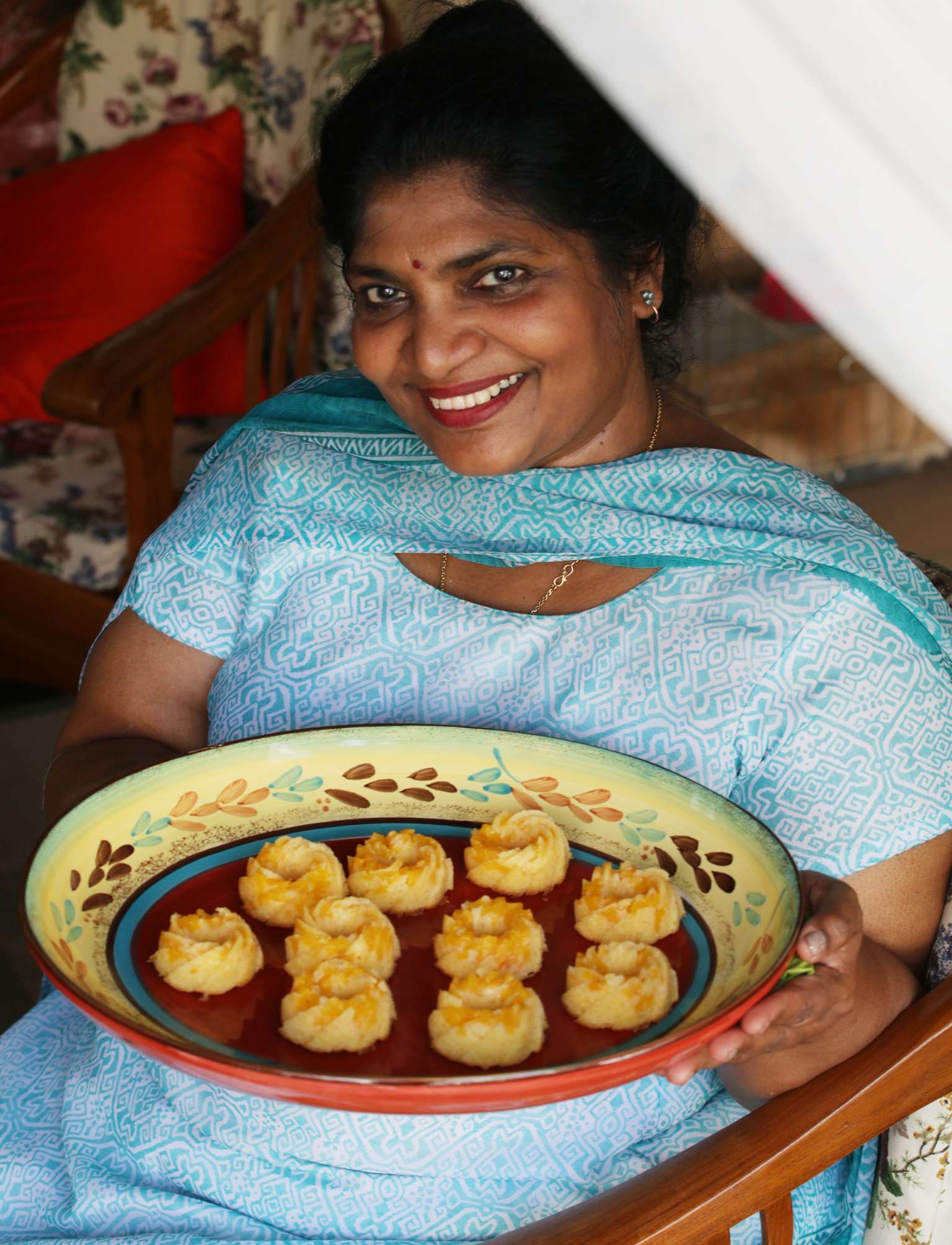 Putu Mayam (string hoppers), is a snack made from rice flour, and is usually eaten with sweetened toppings such as grated coconut or gula melaka (palm sugar) or with savoury dishes such as curry, sambal or stew.